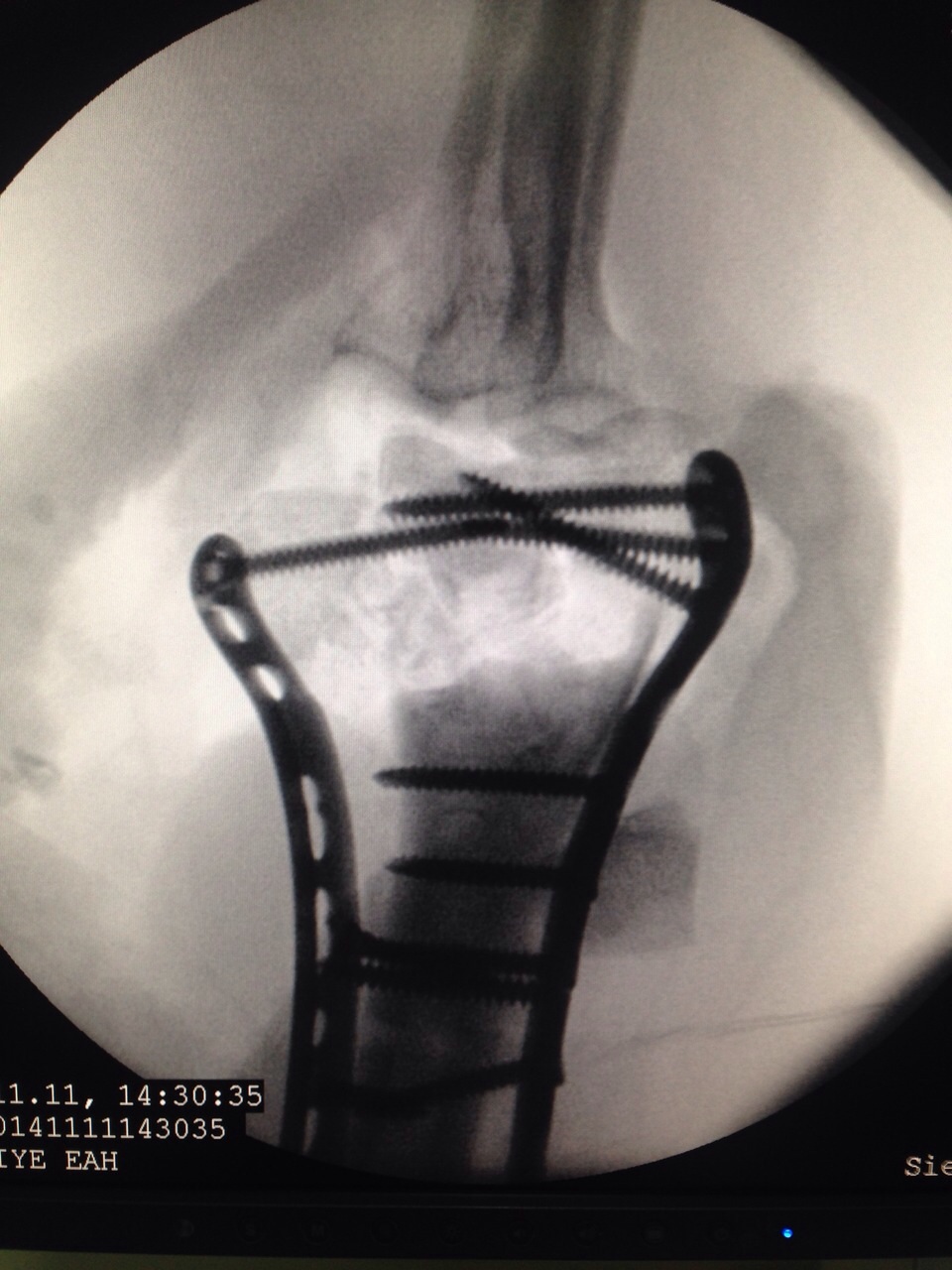 Kirschner wire holes accept Kirschner wires (up to 1.5 mm) to temporarily fix the plate to the bone , to temporarily reduce articular fragments, and to confirm the location of the plate, relative to the bone.