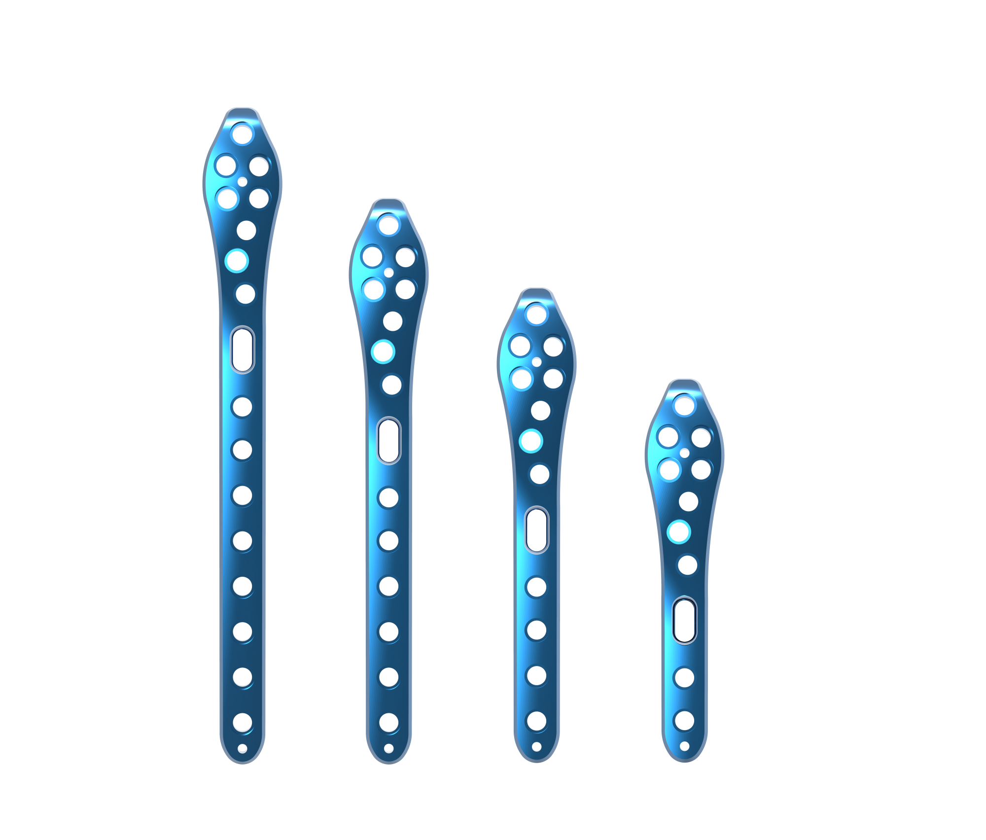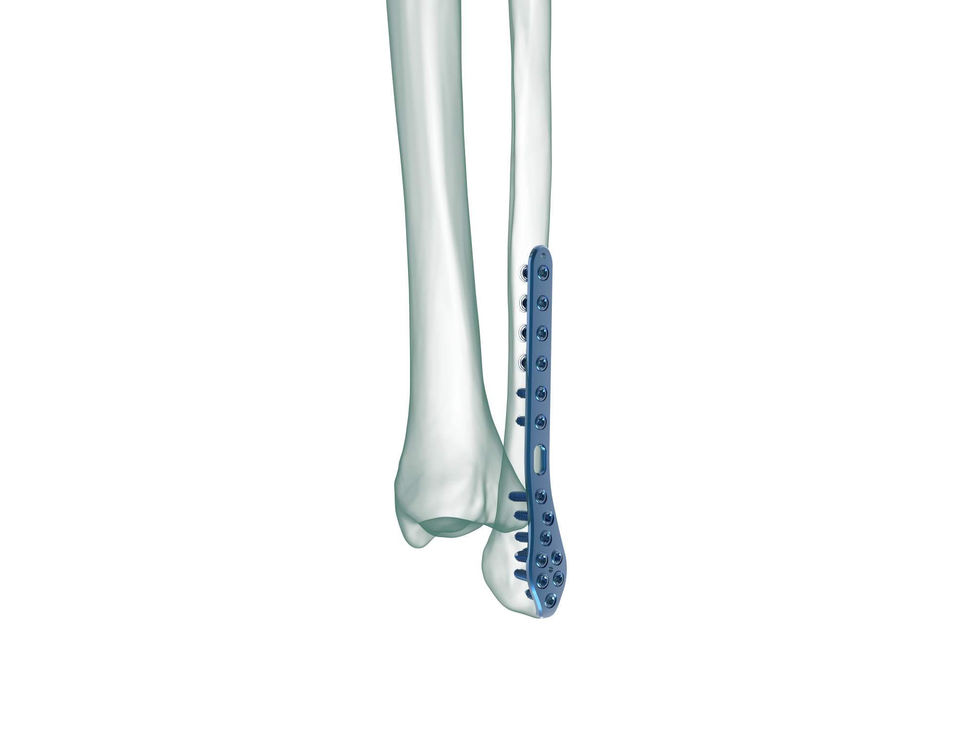 Kirschner wire holes accept Kirschner wires (up to 2.0 mm) to temporarily fix the plate to the distal fibula, to temporarily reduce articular fragments, and to confirm the location of the plate, relative to the distal fibula.