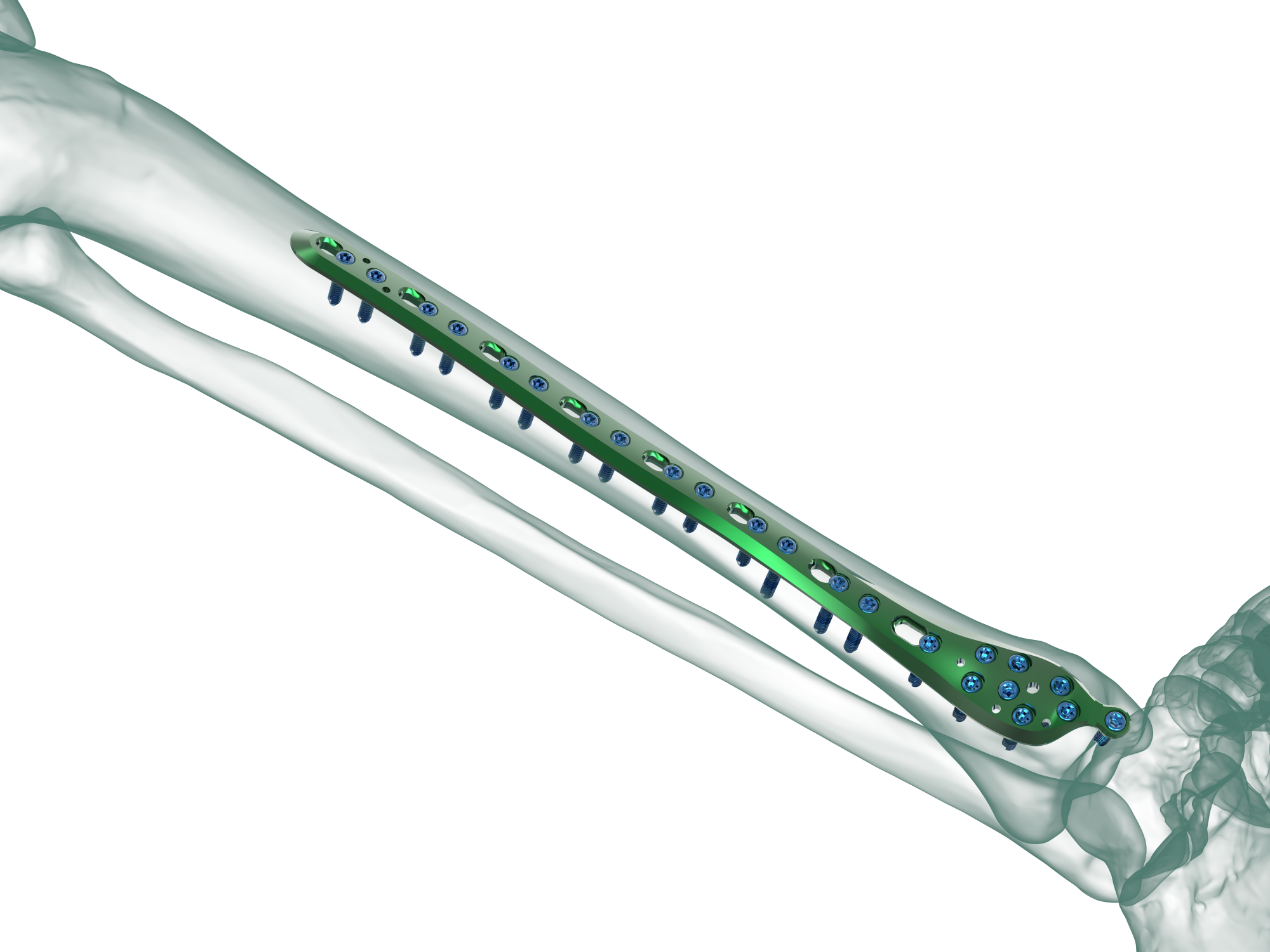 At the cancellous part of the bone near the joint, 4,0 mm cancellous locking screw option supports plate and screw fit well; prevents it from pull out .