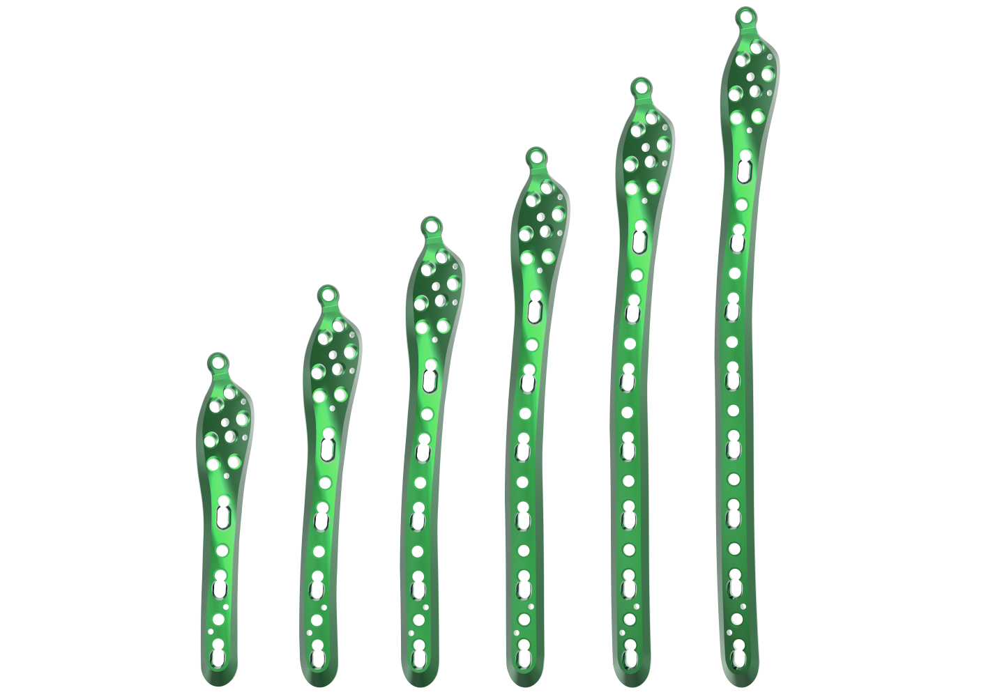 Kirschner wire holes accept Kirschner wires (up to 2.0 mm) to temporarily fix the plate to the distal fibula, to temporarily reduce articular fragments, and to confirm the location of the plate, relative to the distal fibula.