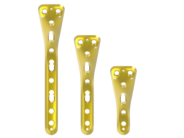 Kirschner wire holes accept Kirschner wires (up to 2.0 mm) to temporarily fix the plate to the tibia , to temporarily reduce articular fragments, and to confirm the location of the plate, relative to the tibia.